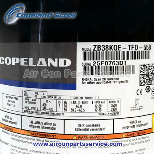 คอมเพรสเซอร์แอร์ Scroll Copeland รุ่น ZB38KQE-TFD-558