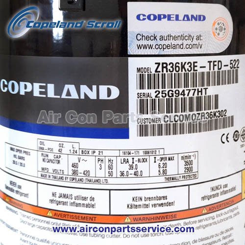 คอมเพรสเซอร์แอร์ Scroll Copeland รุ่น ZR36K3E-TFD-522