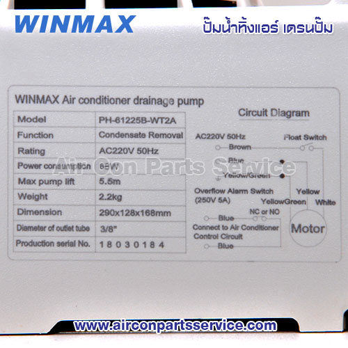 ปั๊มน้ำทิ้งแอร์ WINMAX รุ่น PH-61225B