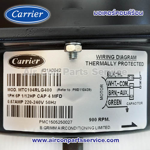 มอเตอร์พัดลมคอยล์ร้อนแอร์แคเรียร์ Carrier