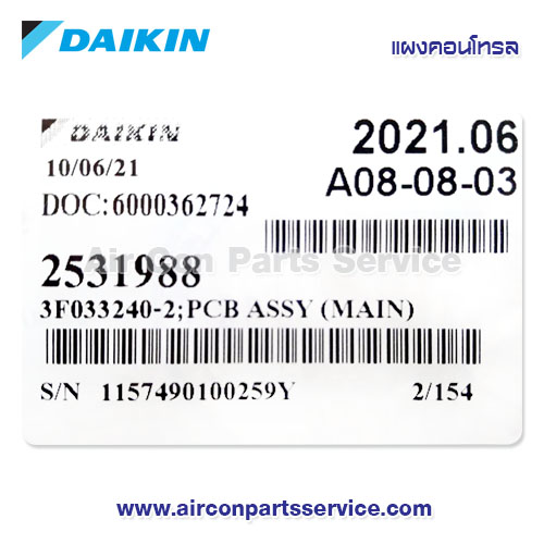 แผงคอนโทรลแอร์ DAIKIN รุ่น 2531988