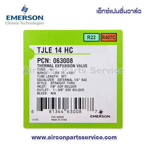 เอ็กซ์แปนชั่นวาล์ว ยี่ห้อ EMERSON รุ่น TJLE 14 HC