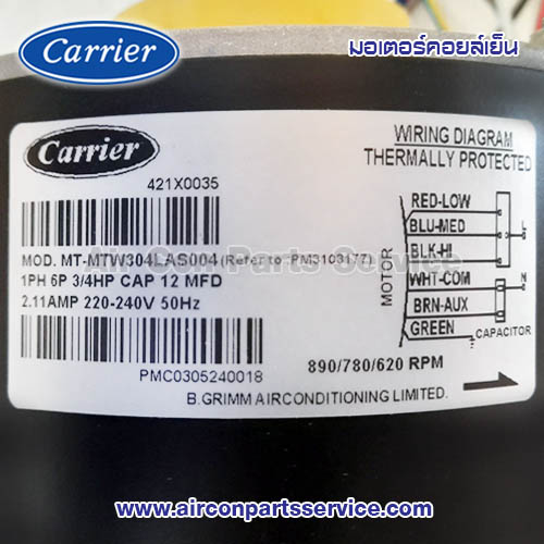 มอเตอร์คอยล์เย็น Carrier รุ่น 421X0035
