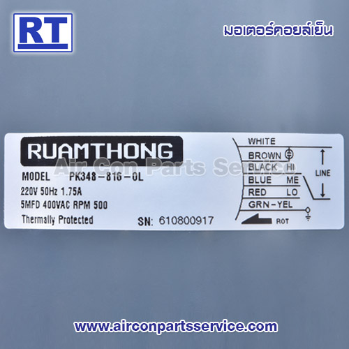 มอเตอร์คอยล์เย็น RUAMTHONG รุ่น PK348-816-OL มอเตอร์คอยล์เย็น RUAMTHONG รุ่น PK348-816-OL ราคา 3,200 บาท ราคาสินค้ารวม vat 7% แล้ว Category: มอเตอร์คอยล์เย็น RUAMTHONG Tags: มอเตอร์แอร์, มอเตอร์แอร์ RUAMTHONG Description Description มอเตอร์คอยล์เย็น RUAMTHONG รุ่น PK348-816-OL มอเตอร์พัดลมคอยล์เย็นยี่ห้อ รวมทอง RUAMTHONG รุ่น PK348-816-OL สำหรับแอร์ตู้แพ็คเก็จ(Fan Coil Motor – มอเตอร์พัดลมแฟนคอยล์)ข้อมูลทางเทคนิค| 220V | 50Hz | 1.75A | 5MFD | 400VAC | RPM 500 | SN: 610800917 | ราคา 3,200 บาท สั่งซื้อสินค้า Related Products มอเตอร์คอยล์เย็น RUAMTHONG รุ่น 120-4110 (1/10 HP) Read more มอเตอร์คอยล์เย็น RUAMTHONG รุ่น RT503020 Read more มอเตอร์คอยล์เย็น RUAMTHONG รุ่น RT505020 Read more มอเตอร์คอยล์เย็น RUAMTHONG รุ่น 120-4115 (1/15 HP) Read more มอเตอร์คอยล์เย็น RUAMTHONG รุ่น 120-4120 (1/20 HP) Read more มอเตอร์คอยล์เย็น RUAMTHONG รุ่น PK455-812-460 Read more มอเตอร์คอยล์เย็น RUAMTHONG รุ่น RT503016 Read more มอเตอร์คอยล์เย็น RUAMTHONG รุ่น RT404012 Read more Posted on February 23, 2019 by POWER.