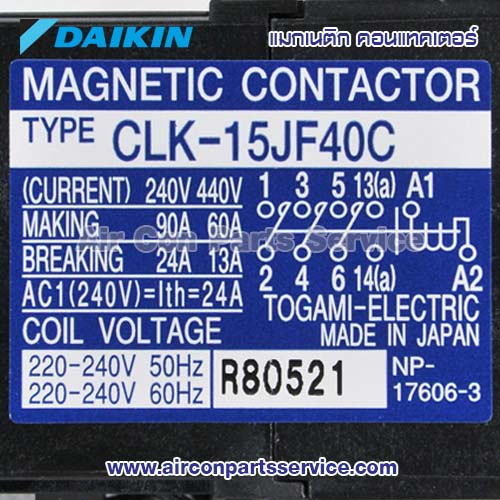 แมกเนติก คอนแทคเตอร์ สำหรับแอร์ไดกิ้น DAIKIN ประเภท Room Air